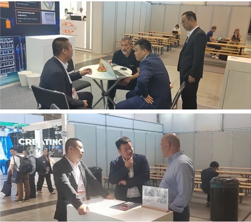 一汽模具作为本次展会中唯一的大型冲压模具制造展商,一开展便吸引了来自全球各地同行及客户交流参观。展会期间参展人员先后与STRACK、武汉派博、CDM、SEAR SCHMIEDE、MAGNA等公司开展深度交流,向各国同行分享了中国一汽的历史文化、红旗品牌“ALL in”新能源品牌战略以及一汽模具的数智制造技术理念。
